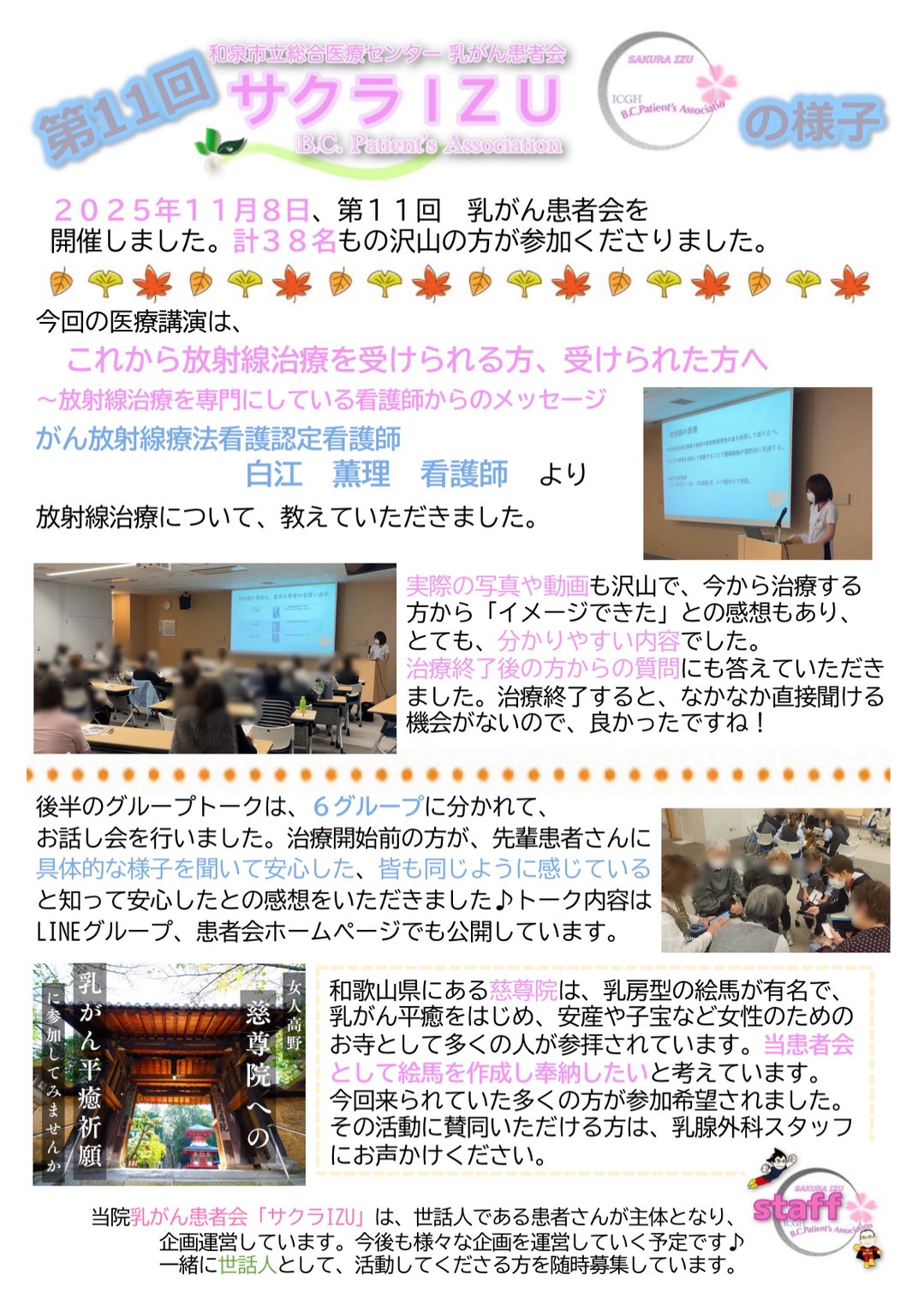 2025年11月8日 第11回乳がん患者会を開催いたしました。2026.3.24
